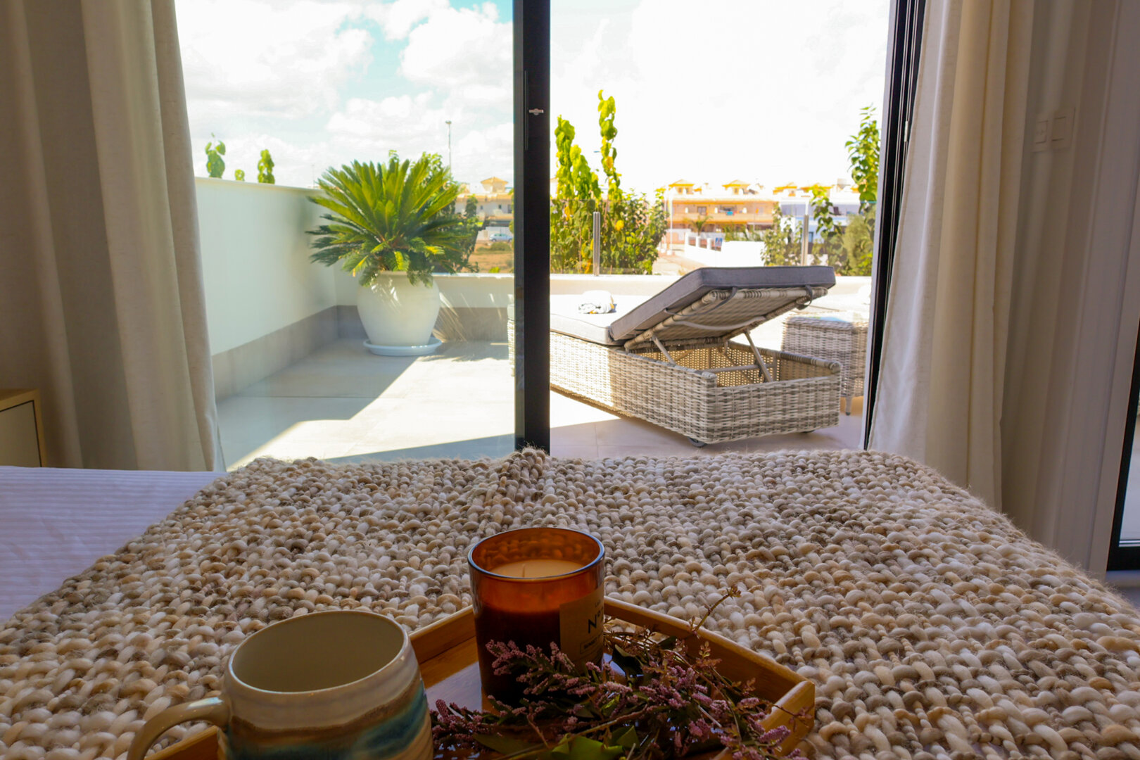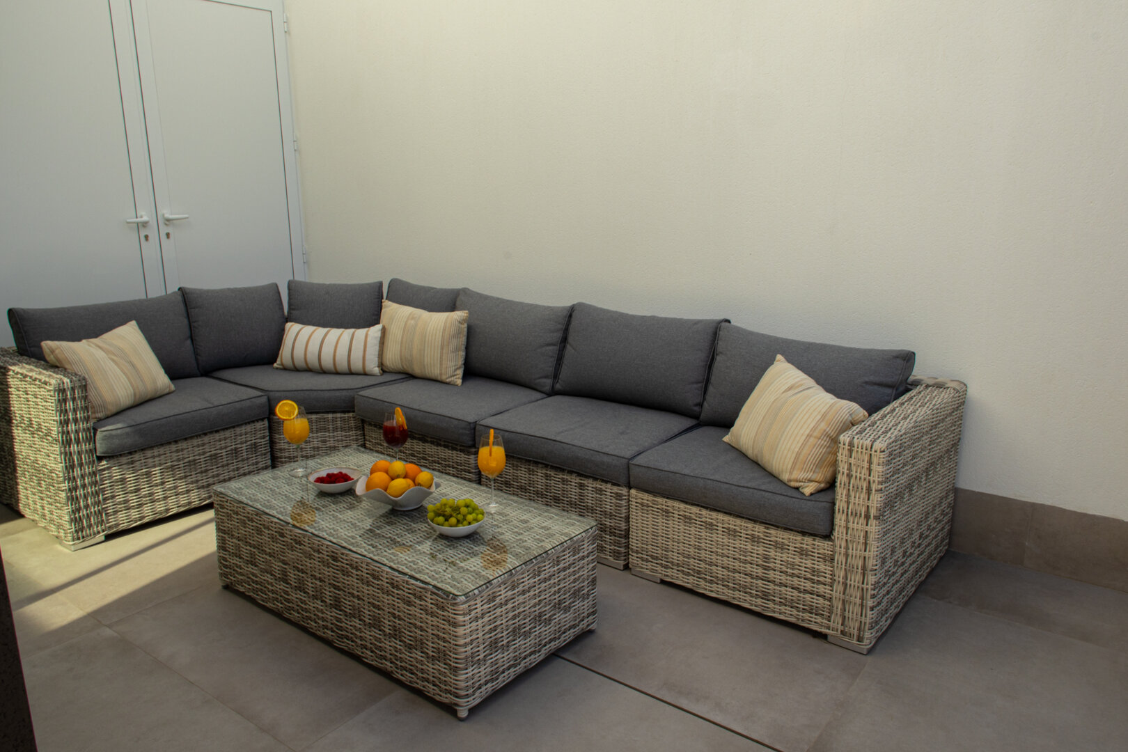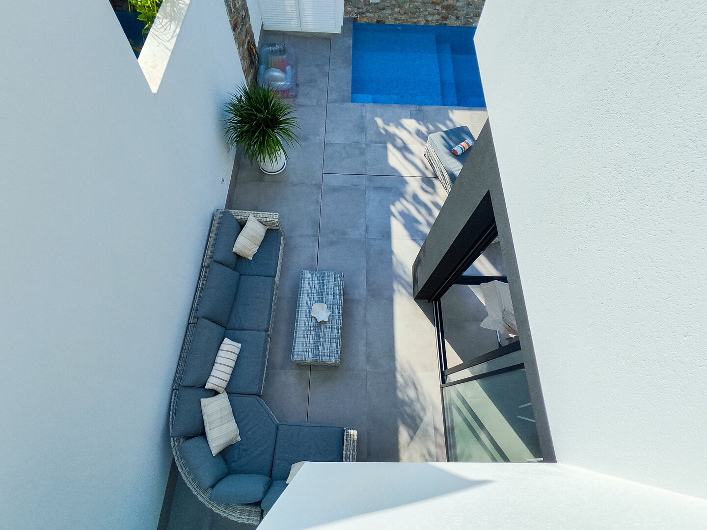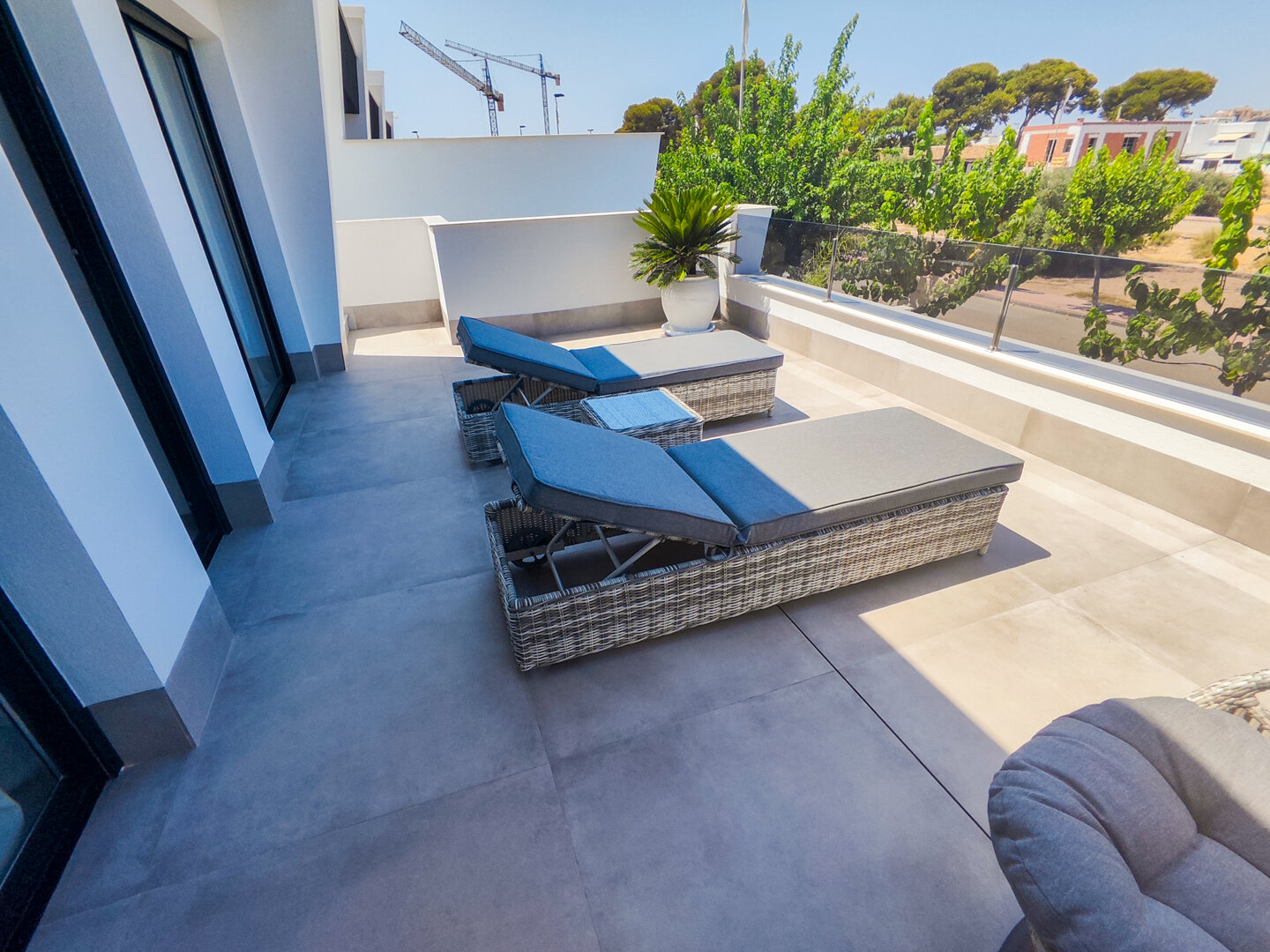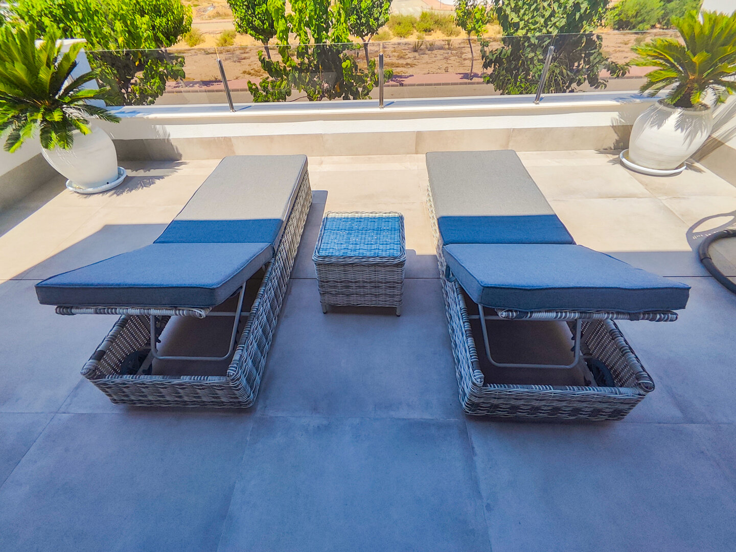 - large terrace with sunbeds and lounge area