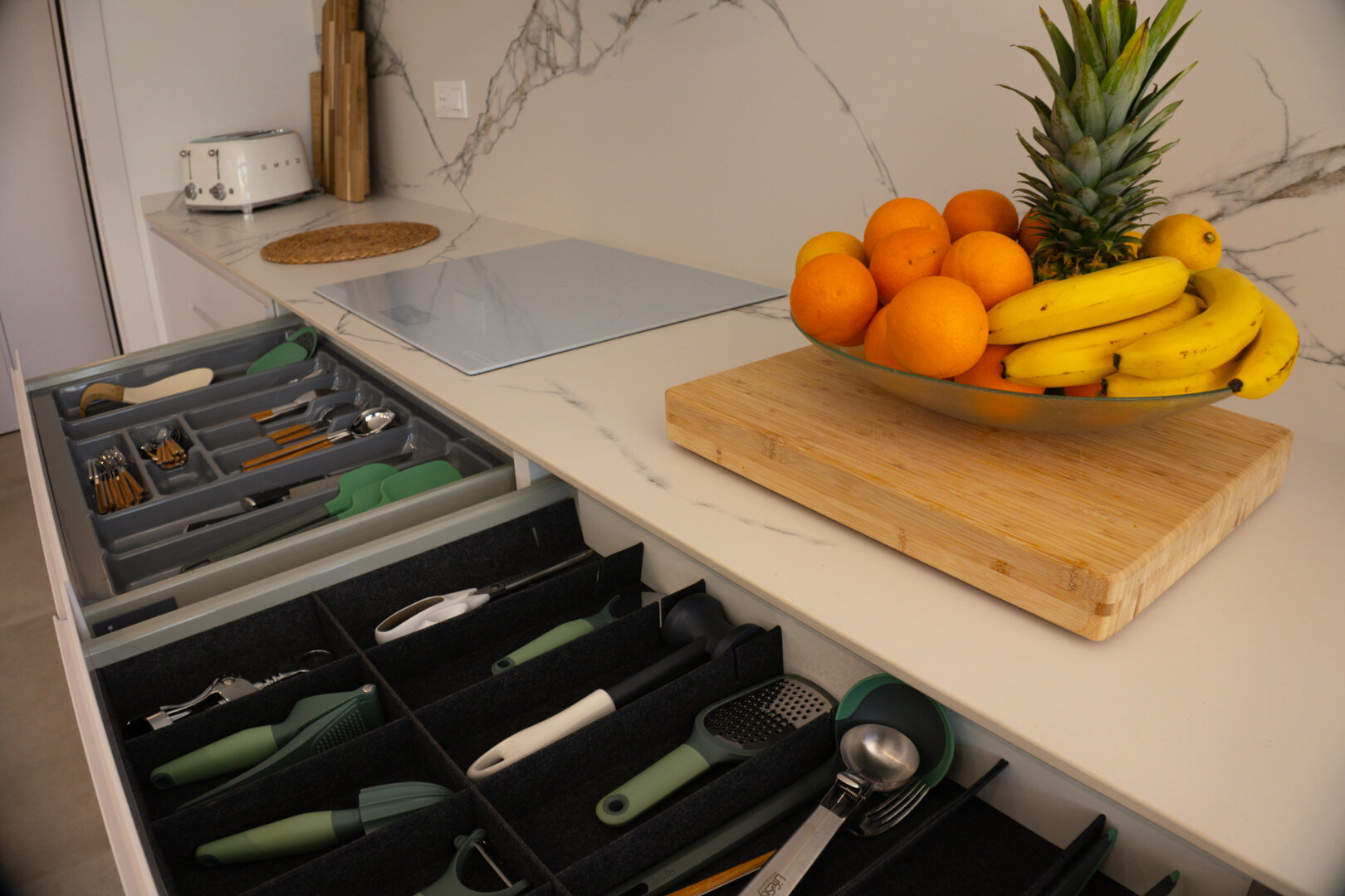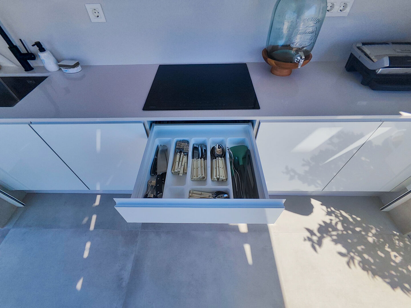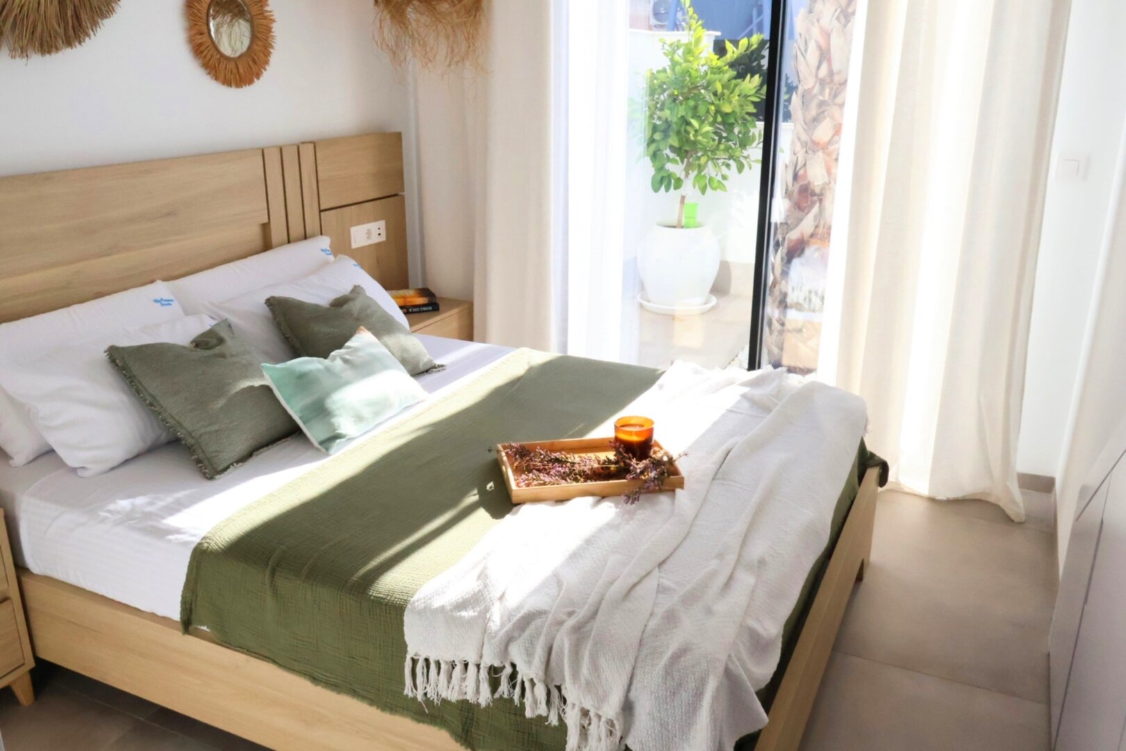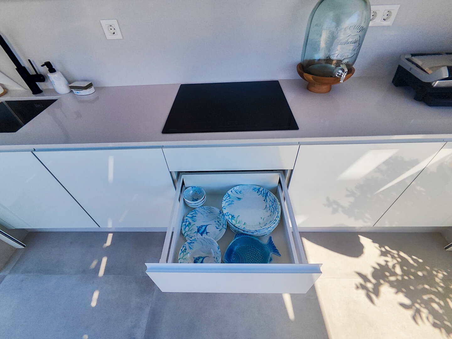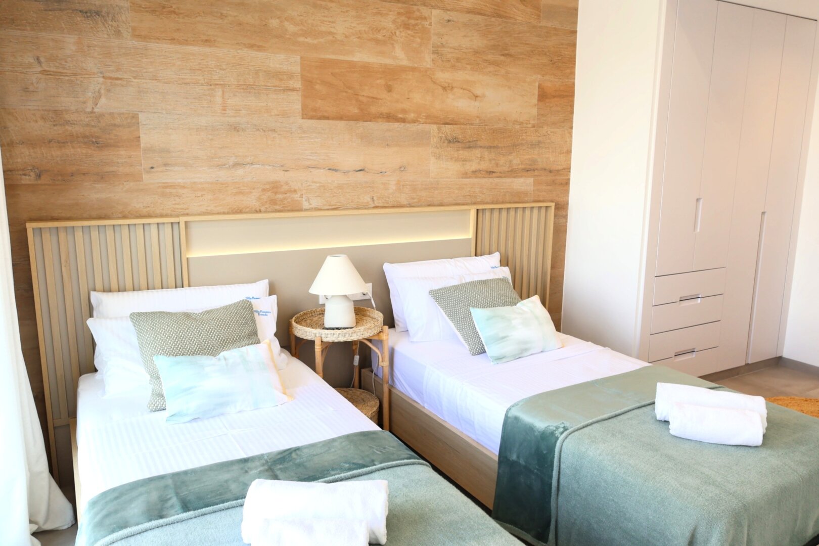 Villa description: Villa Murcia offers 220 m² of fully private space — the entire house, garden and terraces are reserved exclusively for you and your group. The interiors are bright, elegant and designed to provide full comfort for both short stays and longer holidays. Three bedrooms with private terrace access, air conditioning and TVs allow for independent relaxation, and the spacious living room with PlayStation is perfect for evenings together. The kitchen equipped with SMEG appliances makes home cooking easy and enjoyable, while the rooftop summer kitchen — with a grill, induction hob and fridge — creates the perfect setting for open-air dinners. The villa offers three bathrooms with underfloor heating and a full set of towels, including pool towels. A citrus garden allows you to pick your own lemon in the morning.
