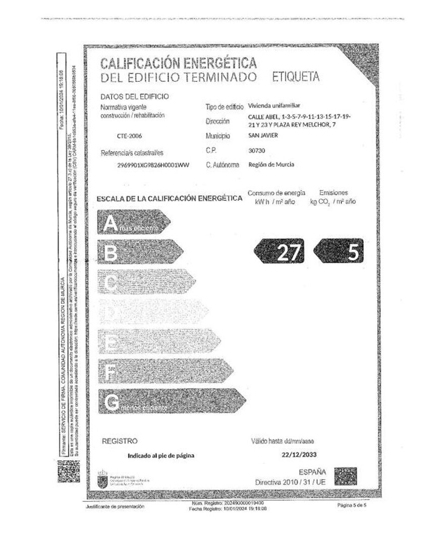 Complex and surroundings: The villa is located in a quiet area surrounded by greenery and low-rise buildings, with easy access to shops, bakeries, restaurants and the seaside promenade — all within walking distance. The location is also a perfect starting point for exploring Costa Cálida: 10 minutes to the pink salt flats and flamingos of Salinas de San Pedro, 30 minutes to the impressive Roman theatre of Cartagena, and 45 minutes to the historical city of Murcia.