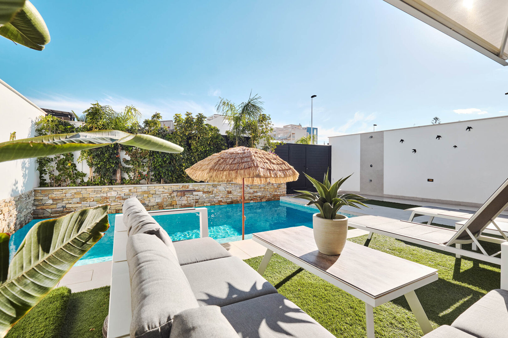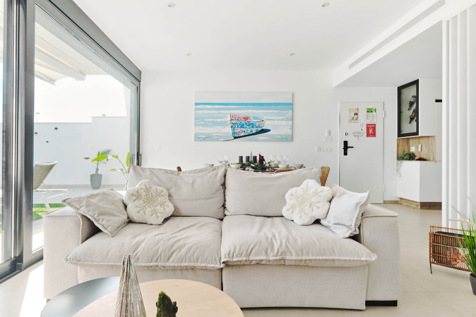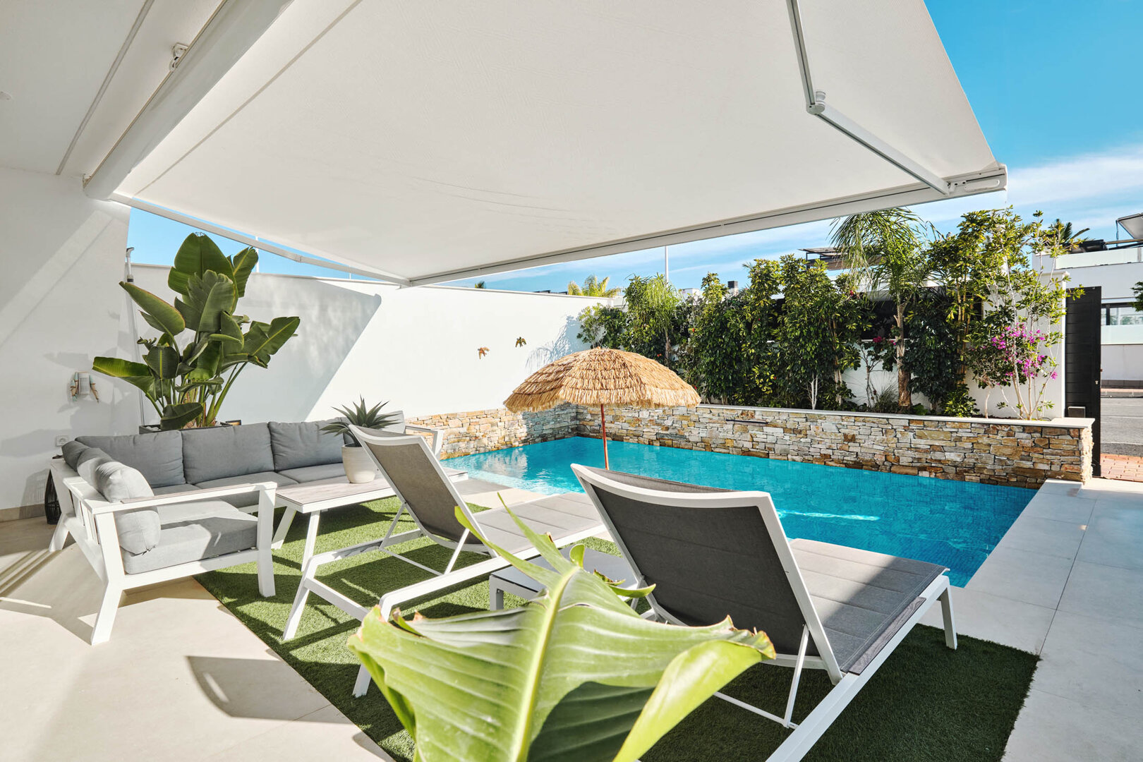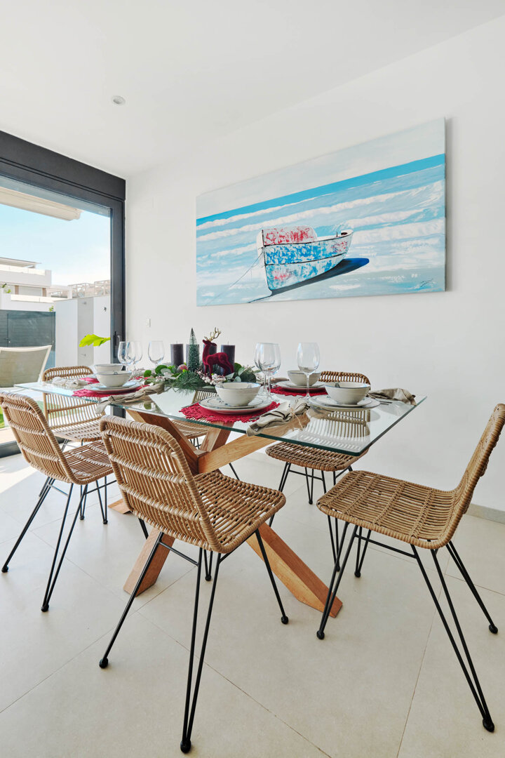 Villa Bahia is an exceptional holiday home that combines modern style, comfort and freedom. Situated in a quiet, coastal area of San Pedro del Pinatar, it offers a private heated pool, a sunny garden and a terrace — an ideal place to relax at any time of the day. Bright, elegant interiors decorated in a light Mediterranean style create an atmosphere perfect for unwinding and spending time together. It’s an ideal space for families, couples and groups of friends who want to relax close to the beach and local attractions, with full comfort and privacy.