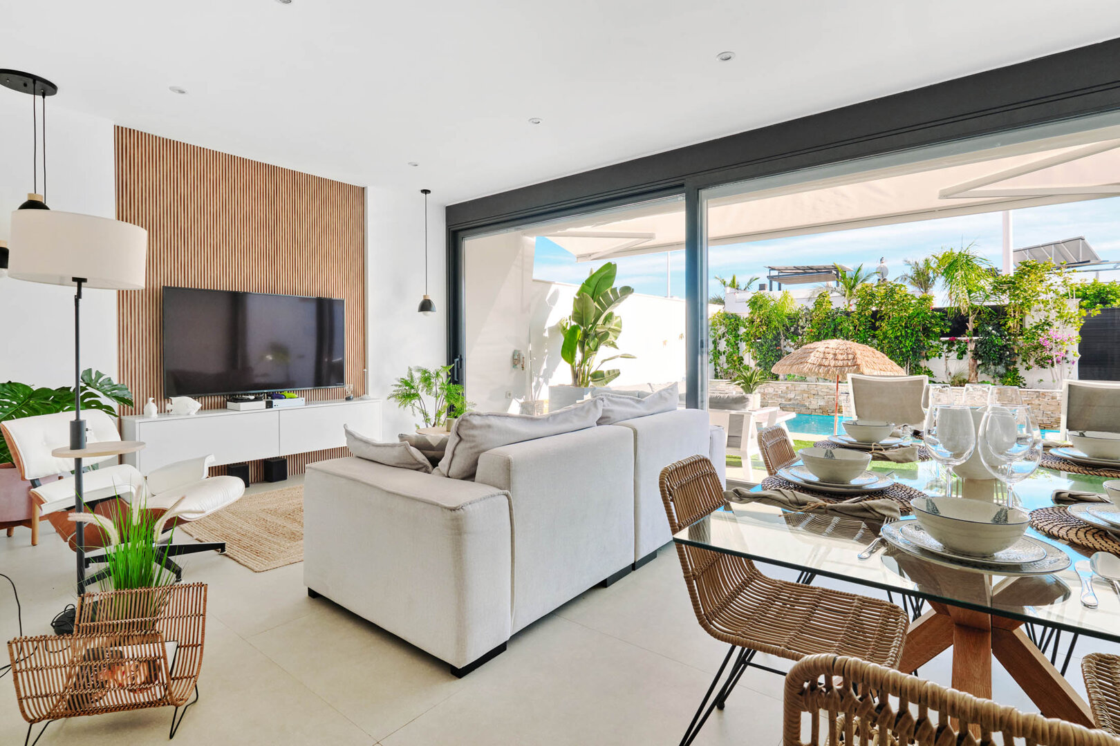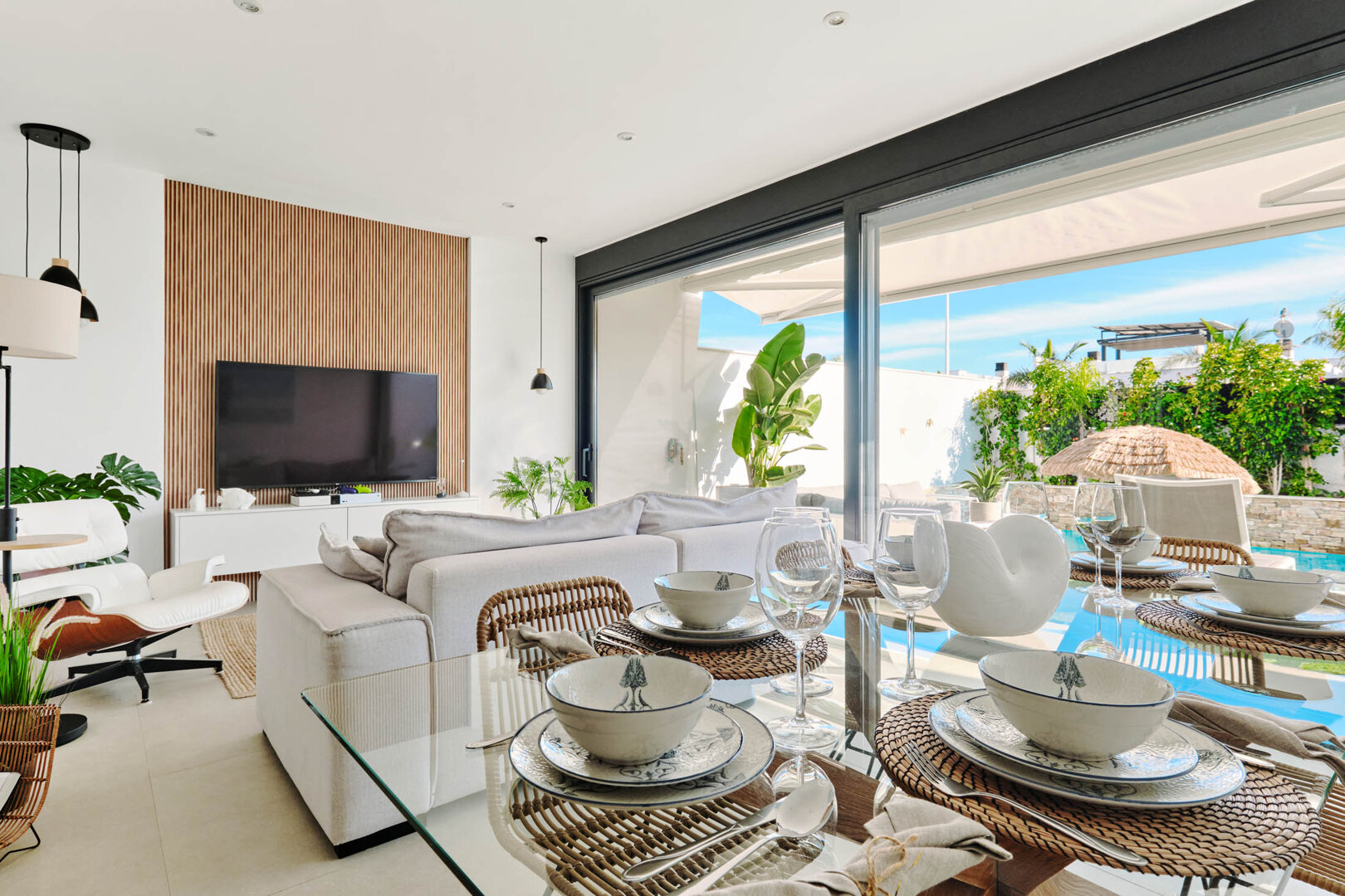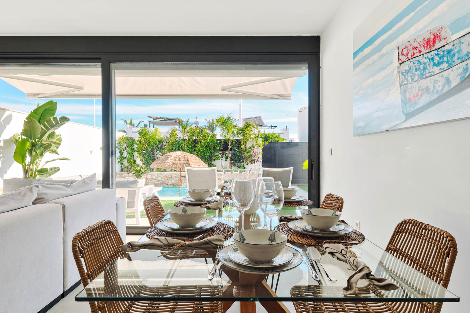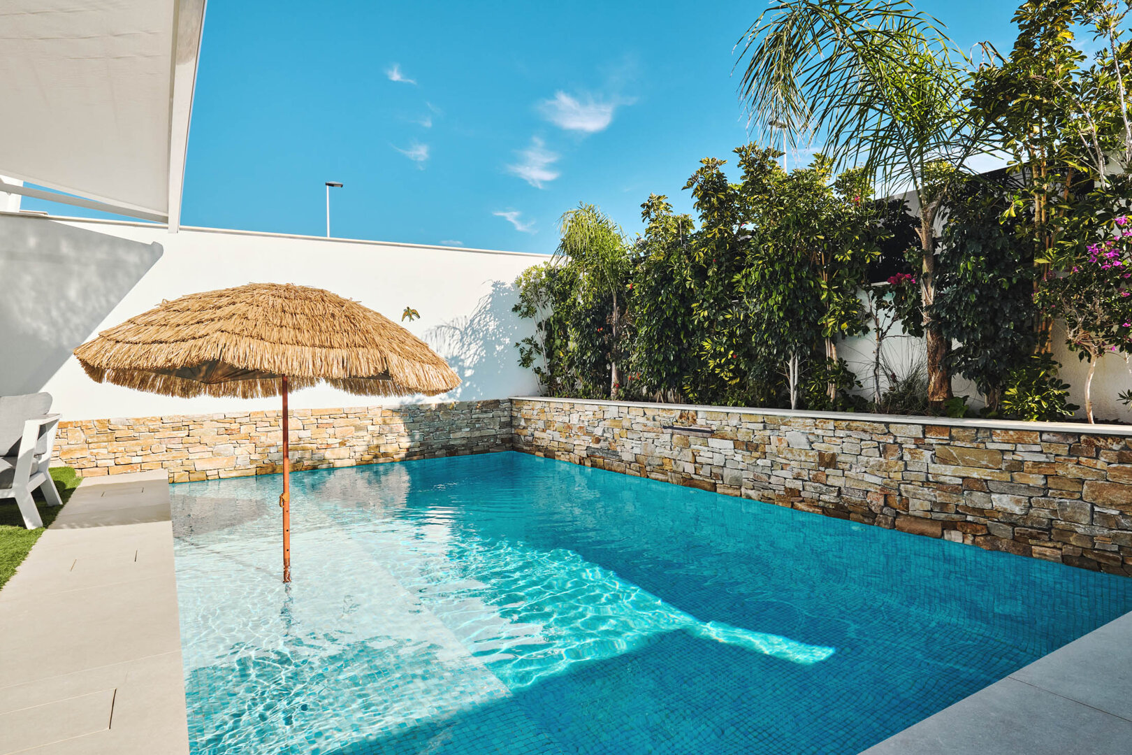 Villa Bahia is an exceptional holiday home that combines modern style, comfort and freedom. Situated in a quiet, coastal area of San Pedro del Pinatar, it offers a private heated pool, a sunny garden and a terrace — an ideal place to relax at any time of the day. Bright, elegant interiors decorated in a light Mediterranean style create an atmosphere perfect for unwinding and spending time together. It’s an ideal space for families, couples and groups of friends who want to relax close to the beach and local attractions, with full comfort and privacy.