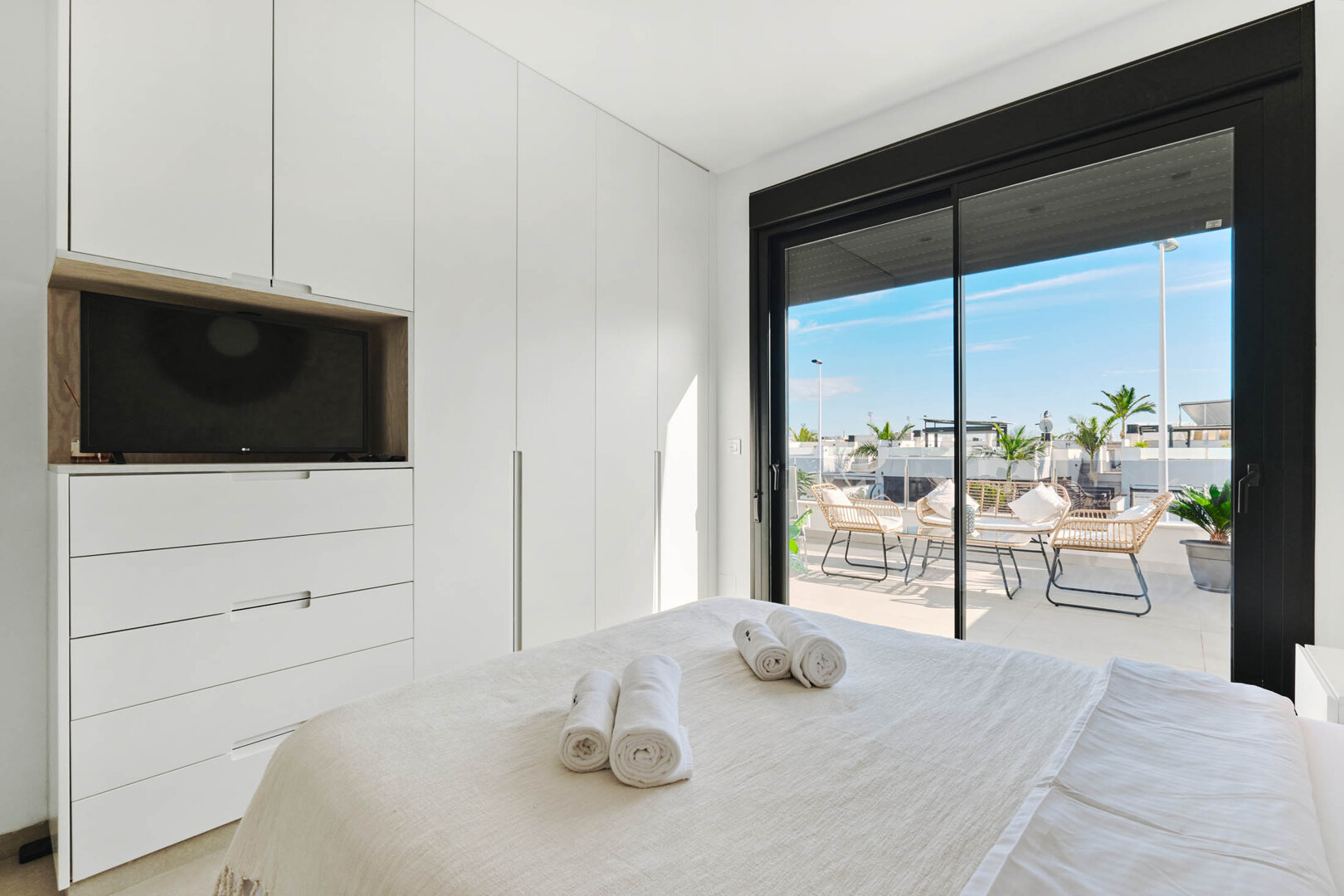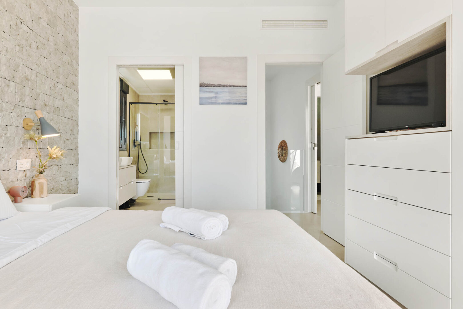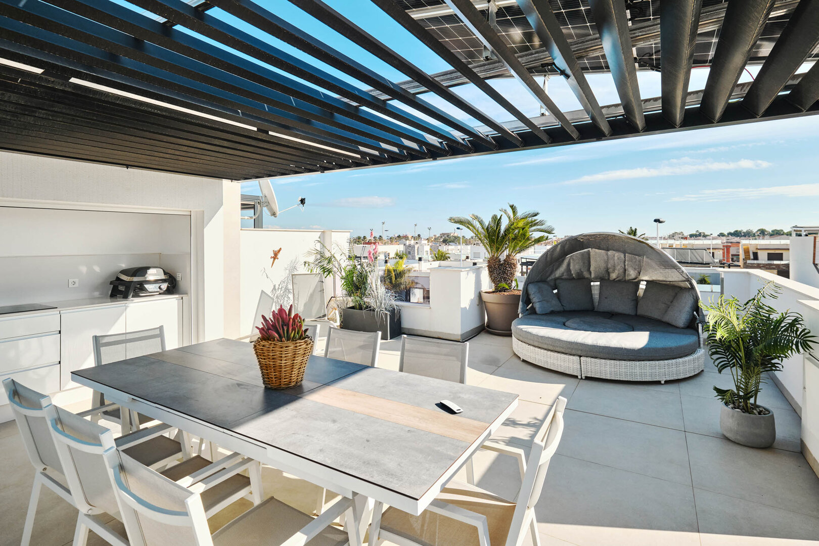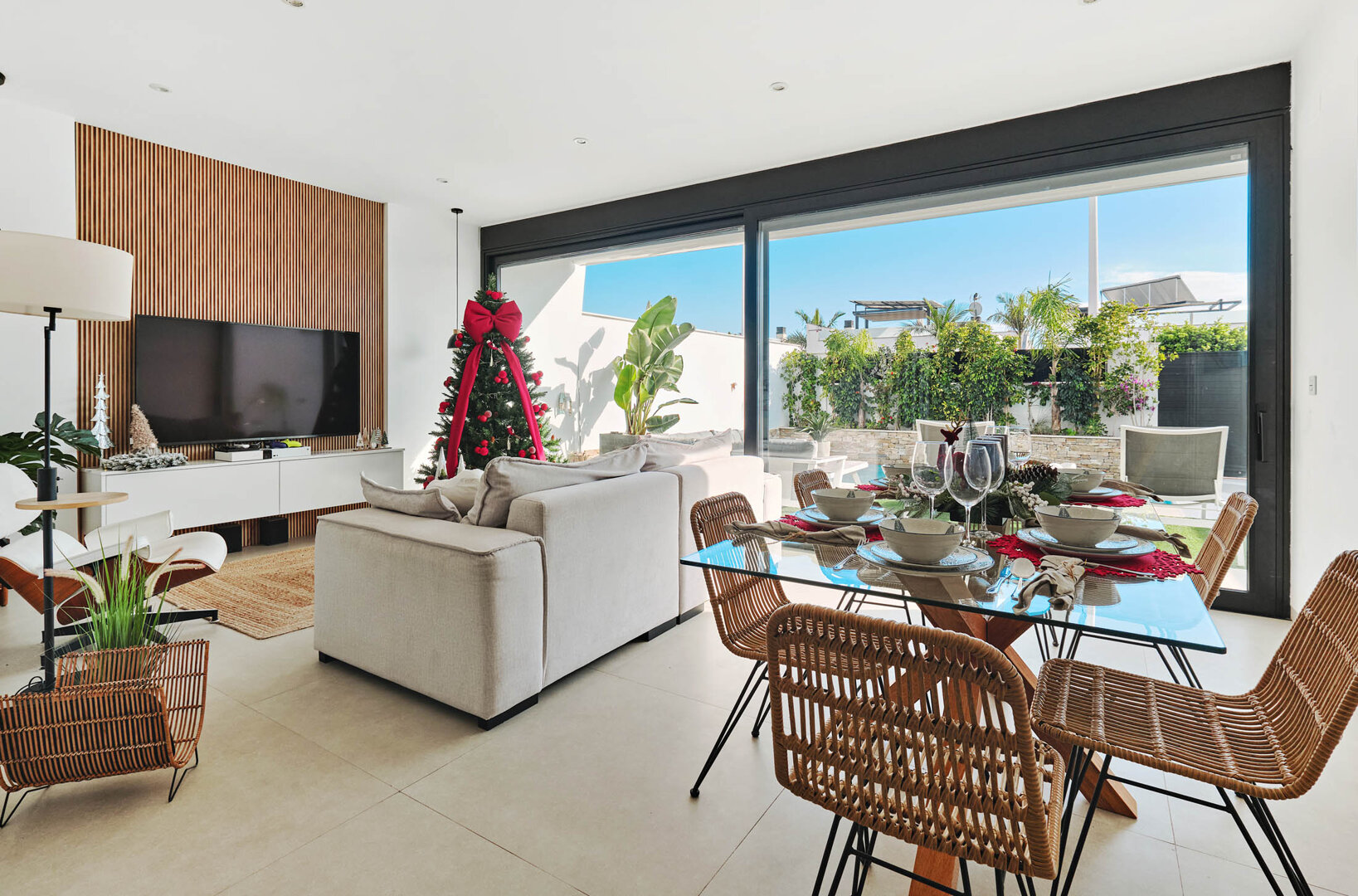Villa Bahia is an exceptional holiday home that combines modern style, comfort and freedom. Situated in a quiet, coastal area of San Pedro del Pinatar, it offers a private heated pool, a sunny garden and a terrace — an ideal place to relax at any time of the day. Bright, elegant interiors decorated in a light Mediterranean style create an atmosphere perfect for unwinding and spending time together. It’s an ideal space for families, couples and groups of friends who want to relax close to the beach and local attractions, with full comfort and privacy.