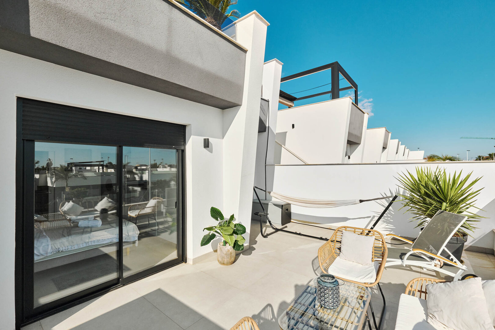 Complex and surroundings: Although Villa Bahia is an independent house, its location provides easy access to the town’s full infrastructure. The area is quiet, well-kept and surrounded by low residential buildings. Nearby there are shops, bakeries, supermarkets, restaurants and a seaside promenade ideal for evening walks. Close by is the Regional Park Salinas y Arenales — one of the most beautiful natural areas in the region, known for its flamingos, dunes and scenic trails. In season, you can visit the natural mud baths in Lo Pagán, while lovers of architecture can explore historic mills, villas and local museums.