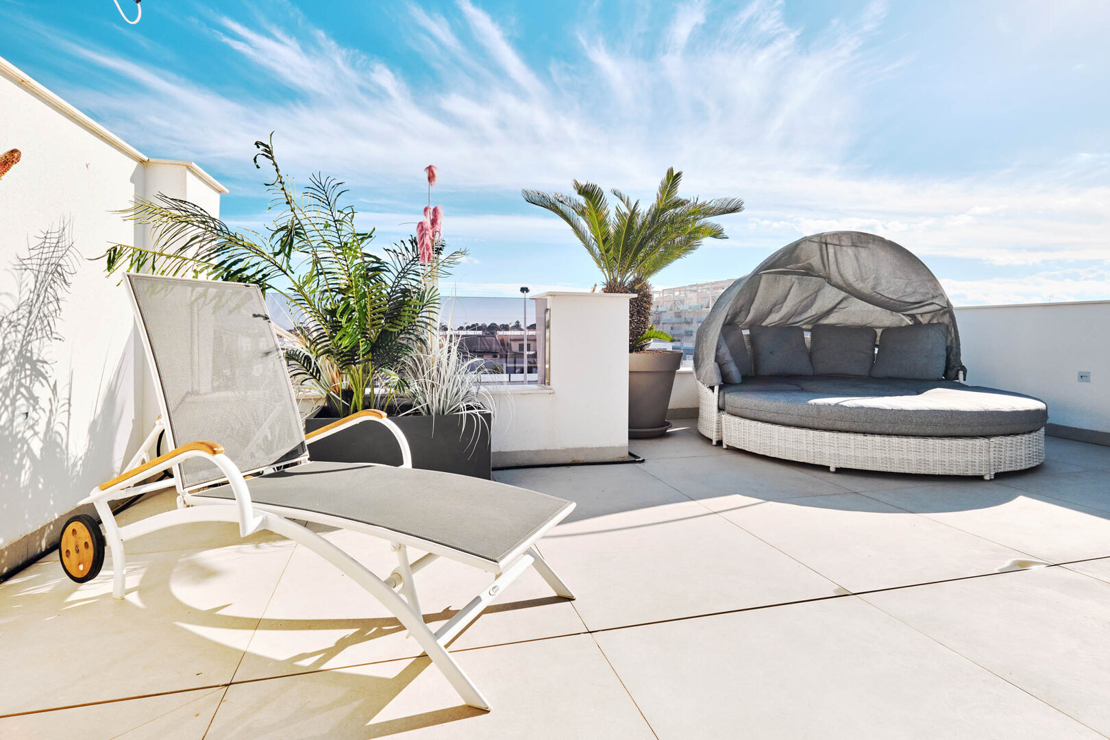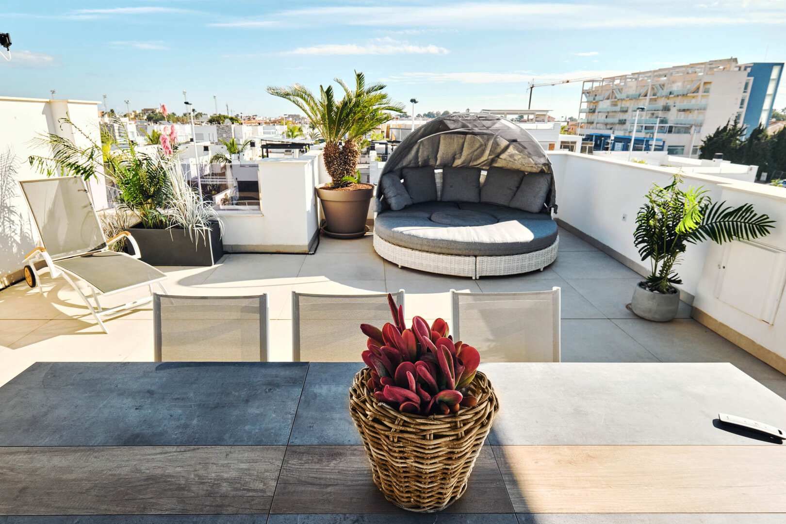 - sunny terrace with outdoor seating