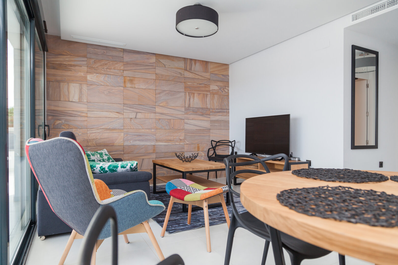 - spacious living room with dining area and kitchenette