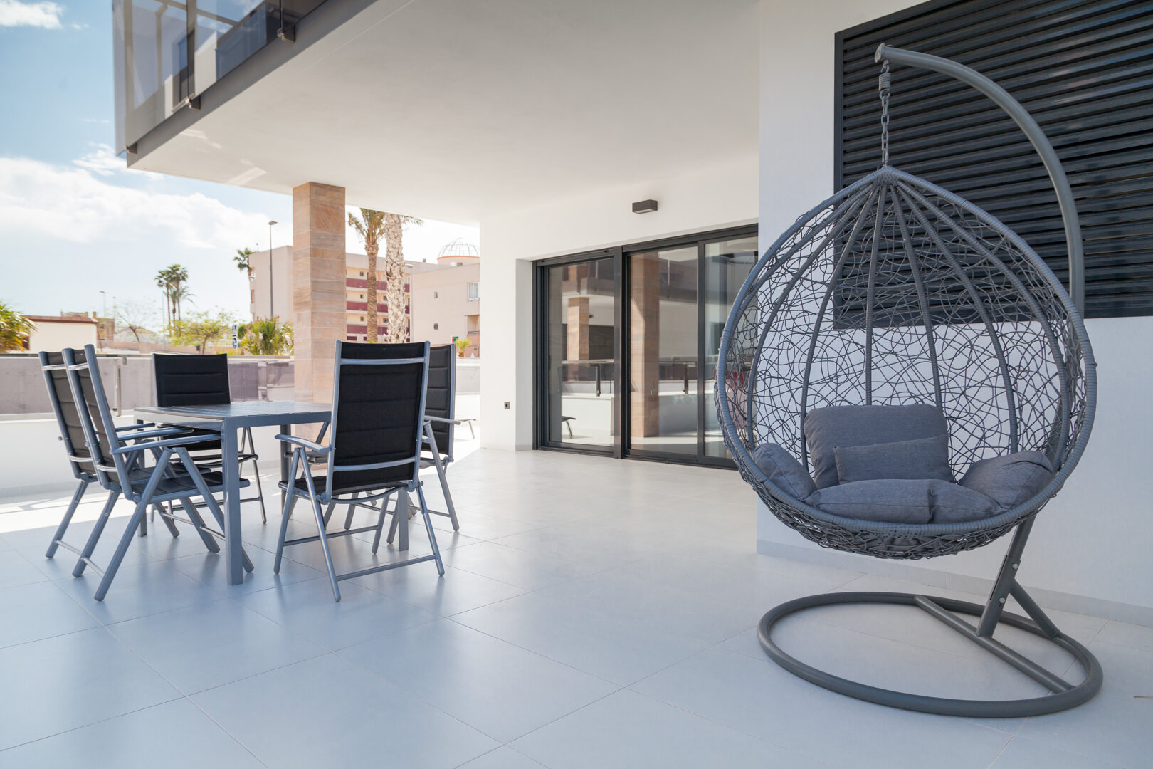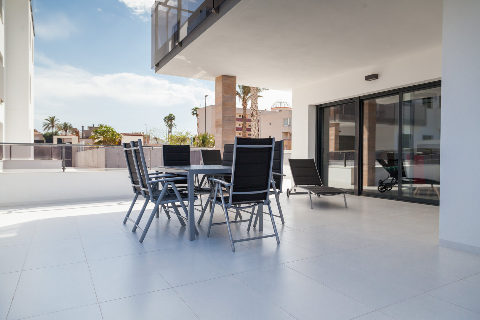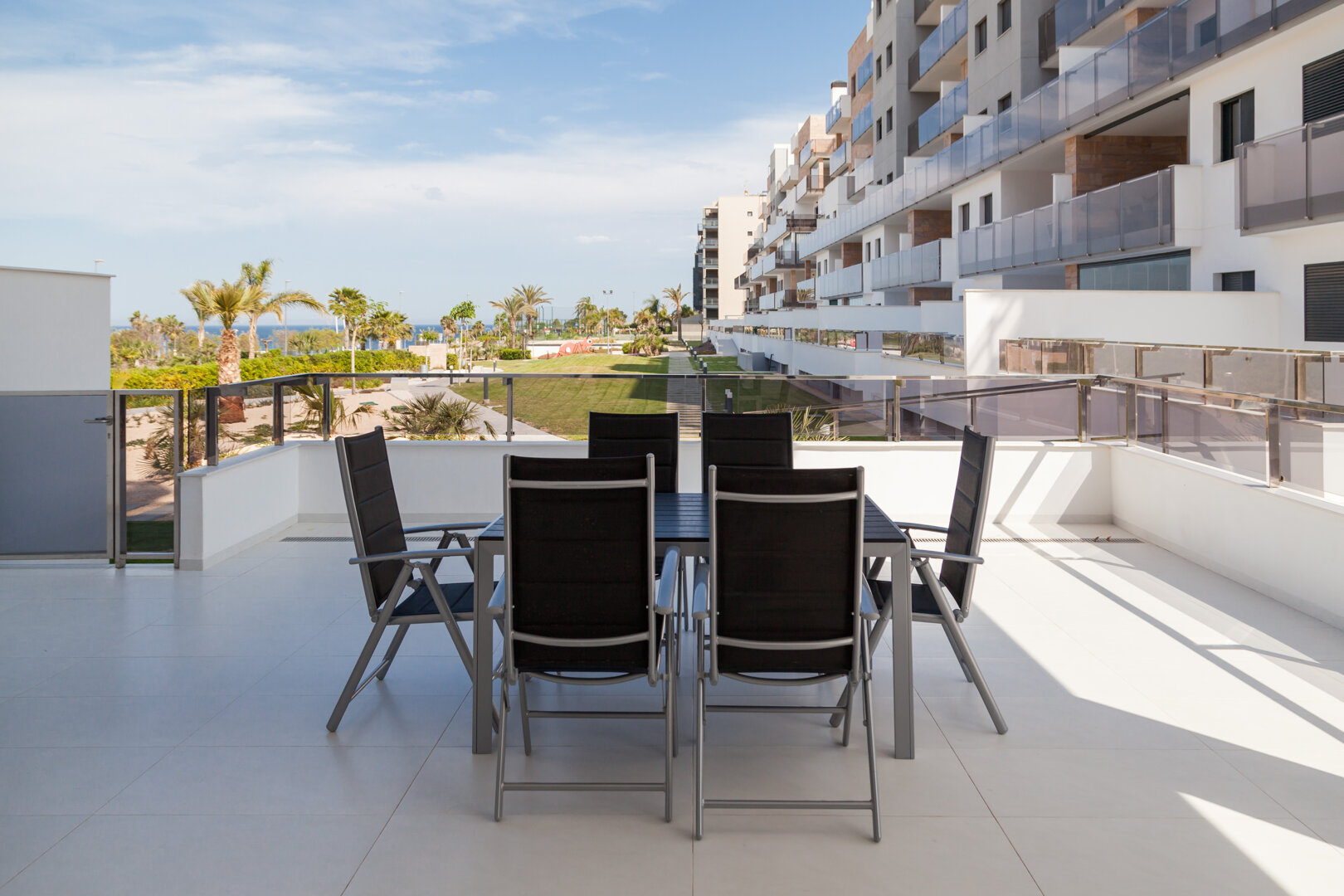 Vistamar I is a comfortable, modern ground-floor apartment located in Mil Palmeras, a district of Pilar de la Horadada, on the southern coast of Costa Blanca. Just a few minutes’ walk separates it from the sandy beaches of Playa Mil Palmeras and Playa de Vistamar. Bright interiors, spacious terraces, and direct access to the pool make it the perfect place for relaxation, a family holiday, or a stay with friends. It’s an excellent choice for those who value comfort, proximity to the sea, and a peaceful coastal atmosphere.