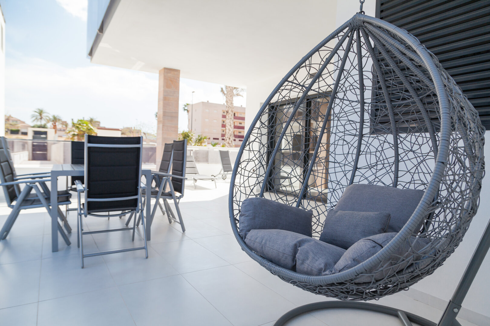 Vistamar III in Mil Palmeras (Pilar de la Horadada) is a modern villa with a private terrace and a sunny rooftop. The comfortable interior, pool access, and proximity to the beach make it the perfect place to relax in true Spanish style.