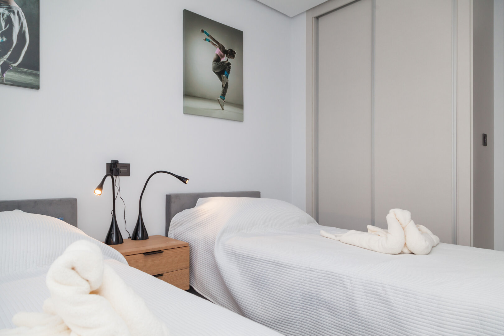 - 2 bedrooms (1 with a double bed, 1 with two single beds)