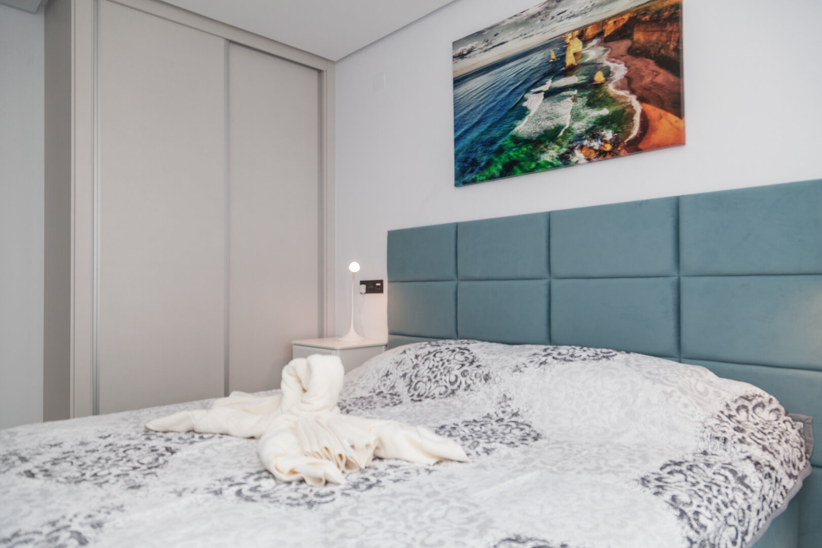 Sunrise View of the Sea in Pilar de la Horadada is an elegant apartment located right next to Mil Palmeras Beach. Its modern interior, terrace with a sea view, and peaceful surroundings make it the perfect place for a relaxing holiday on the Costa Blanca.